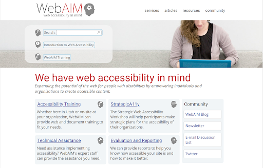 WebAIM or Web Accessibility In the Mind aims to expand the web’s full potential for people with disabilities by empowering individuals and organizations to create accessible content.